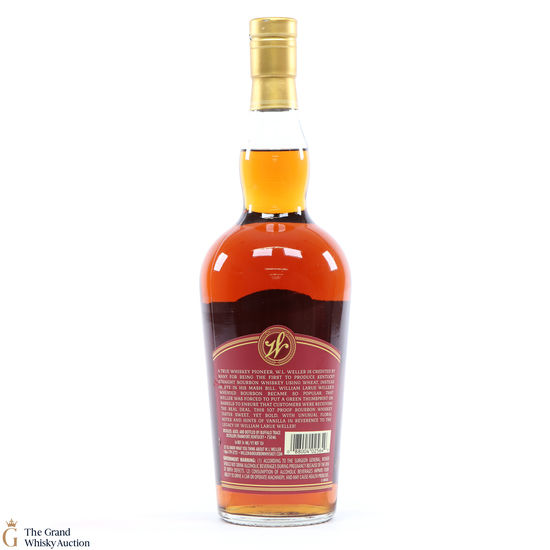 The W.L. Weller whiskies are produced with a higher wheat percentage than other bourbons which give them a light, sweet character and they are said to be softer drinking experience. This is a 75cl bottling of W. L. Welller Antique 107 wheated bourbon which relates to 107 proof.