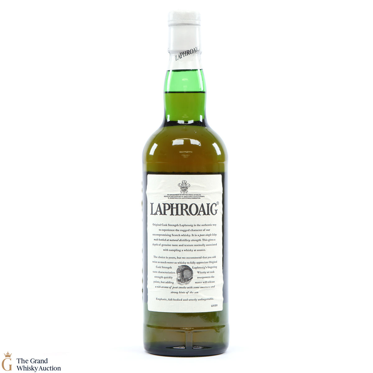 A 70cl cask strength bottle of the medicinal 10-year-old from Islay's bestselling distillery, Laphroaig. In making Laphroaig, malted barley is dried over a peat fire. The smoke from this peat, found only on Islay, gives Laphroaig its particularly rich flavour.