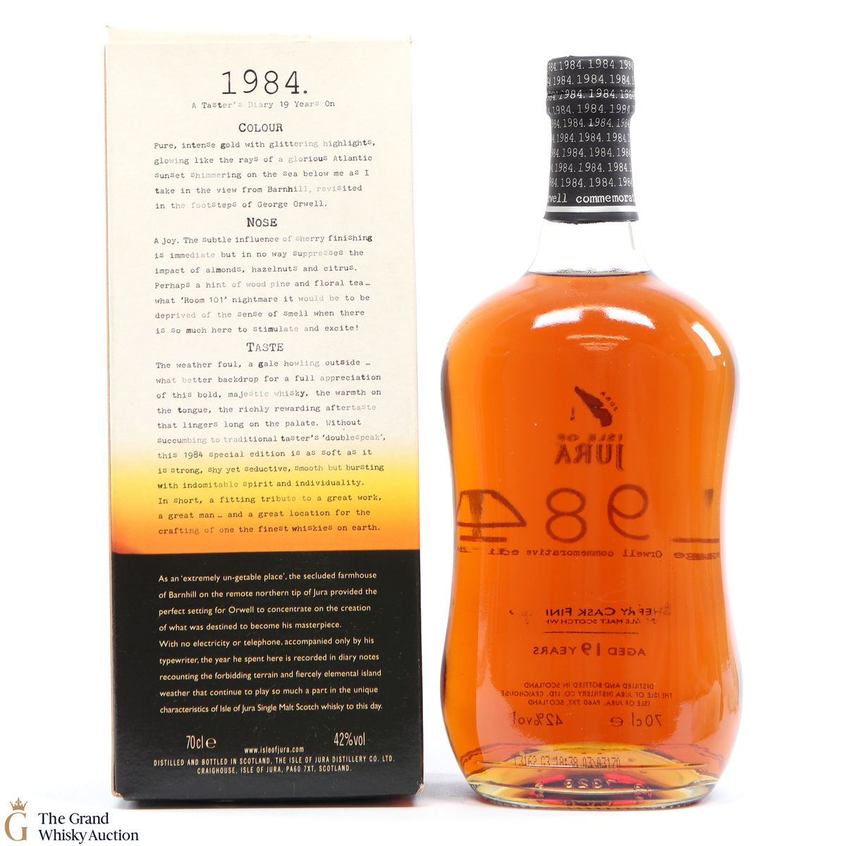 This special edition 19 Year old was released to commemorate the centenary of George Orwell's birth and has been finished in sherry casks. George escaped the pressures of London life for the tranquil isolation of Jura in 1948 to write his vision of the future Nineteen Eighty Four.