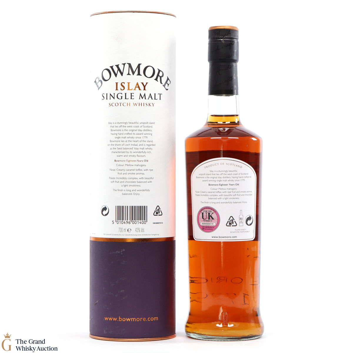 Produced from the unspoiled land of Islay, this beautiful malt has been aged for 18 years in the famous Vaults. Bowmore is in the heart of the island and on the shore of Loch Indaal.