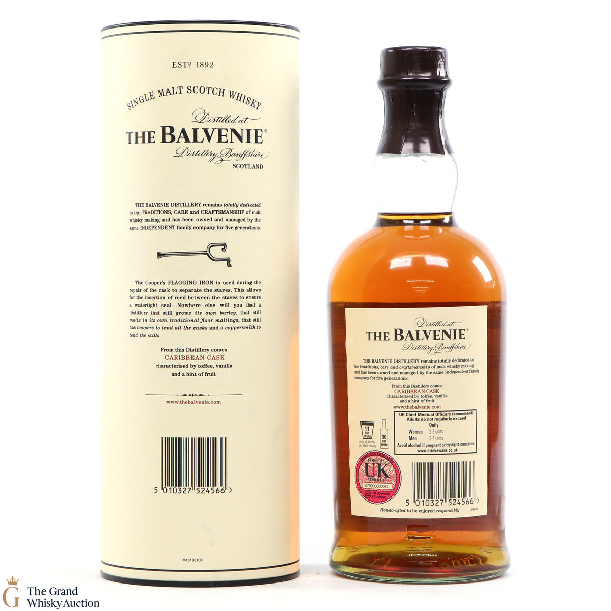 The Balvenie Caribbean Cask 14 year old has been matured in traditional oak whisky casks for 14 years, and then finished in casks that previously held Caribbean rum.