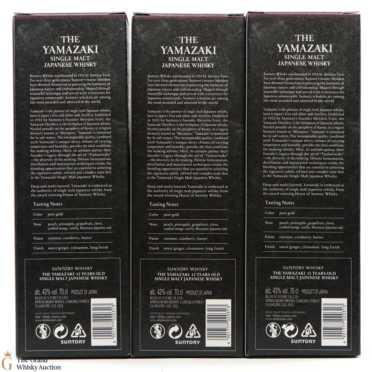 This lot includes 3 x Yamazaki 12-Year-Old 70cl bottlings.
