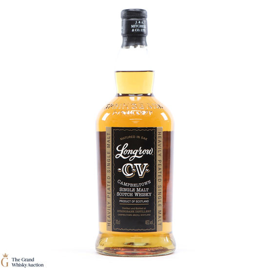 A bottle of Longrow CV which used to be Longrow's entry-level whisky. Longrow is Springbank's heavily peated whisky - this is a no age statement expression. It was named Best Peated Malt at the 2010 Malt Maniacs Awards.