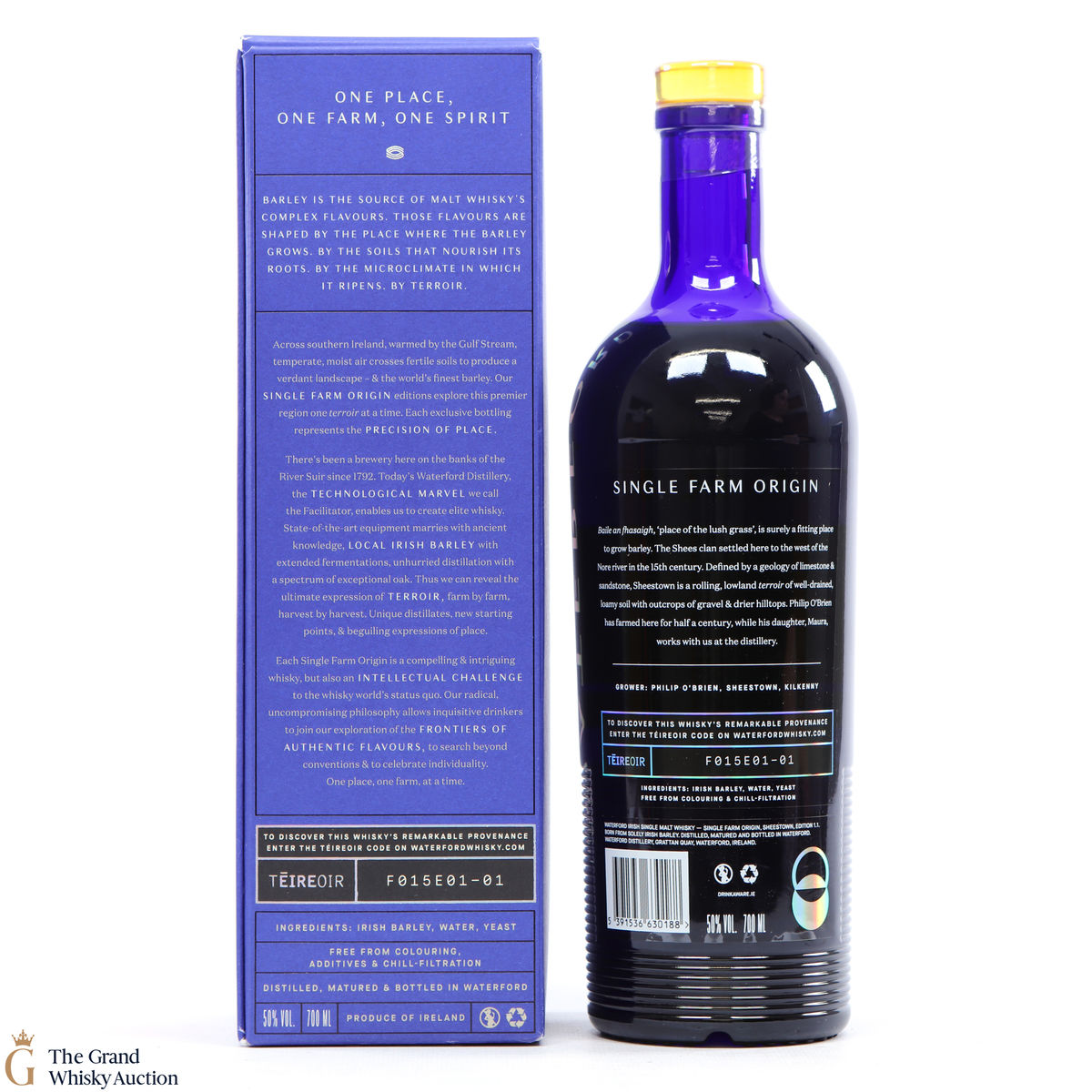 Sheestown 1.1 – This is also one of the first releases from the Waterford Distillery's Single Farm Origin series. This single malt Irish whisky was grown by Robert Milne on one of Ireland’s premier malting barley terroirs – the famous Clonroche Series in Co. Wexford, with its loamy, clay soils derived from slate and granite.