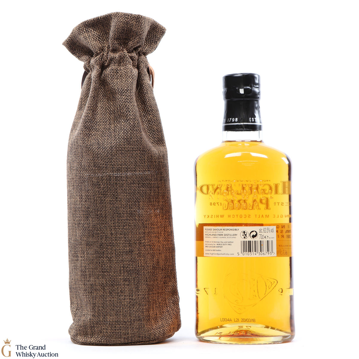 This bottling is part of Highland Park's Single Cask Series and was bottled exclusively for World Duty Free & Glasgow Airport. Distilled in 2004, this single malt was matured for 13 years in refill butt #6569 at the cask strength of 63.5% ABV. With only 660 bottles available, this is a limited edition.