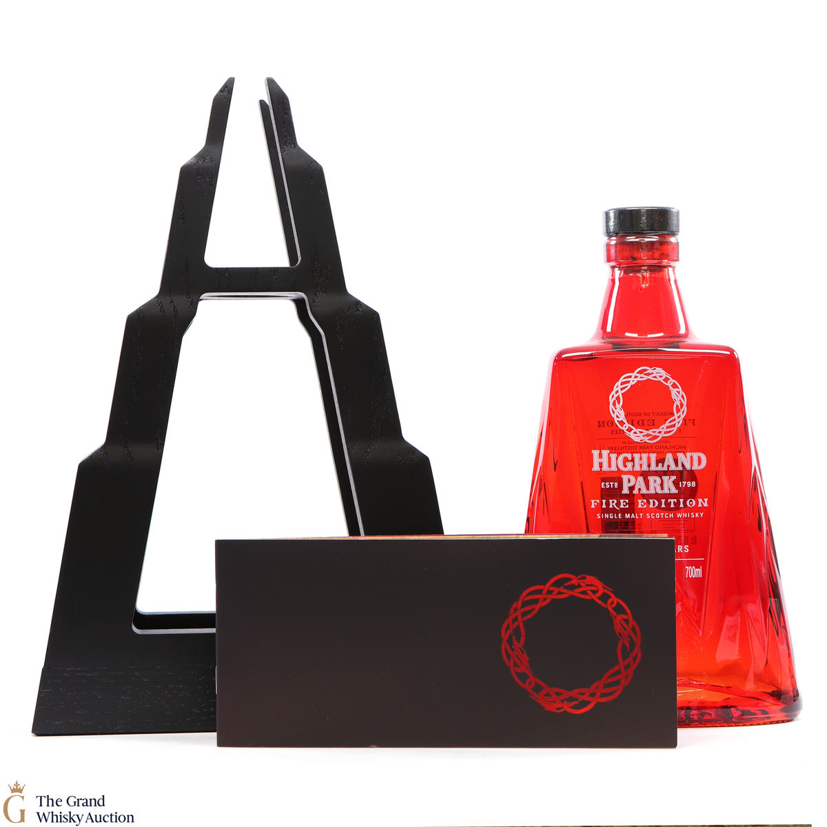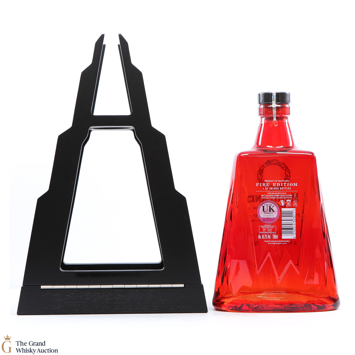 This stunning Highland Park 15 year old single malt follows the 'Ice' edition to complete this Highland Park two-part series. The 'Fire' edition celebrates Muspelheim, the glowing Norse fire realm of destruction. The malt was matured in refill Port casks and bottled at 45.2% abv. It's presented in a cradle shaped like a mountain.
