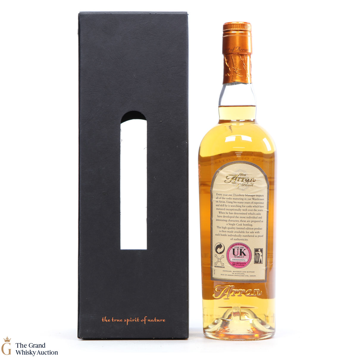 Due to the various ages of bottles and their seals, the condition of liquid is at the buyer's discretion and no claim can be lodged against failure/leakage in transit. Loss and breakage cover is available at 3% of the hammer price as standard. If the lot is not insured, no claim can be lodged against the courier or The Grand Whisky Auction for breakage or loss in transit.