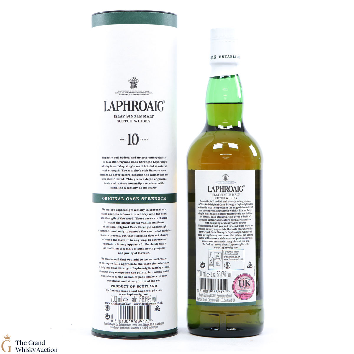 This original cask strength bottling of the medicinal 10 year old from Islay's bestselling distillery, Laphroaig. In making Laphroaig, malted barley is dried over a peat fire. The smoke from this peat, found only on Islay, gives Laphroaig its particularly rich flavour.