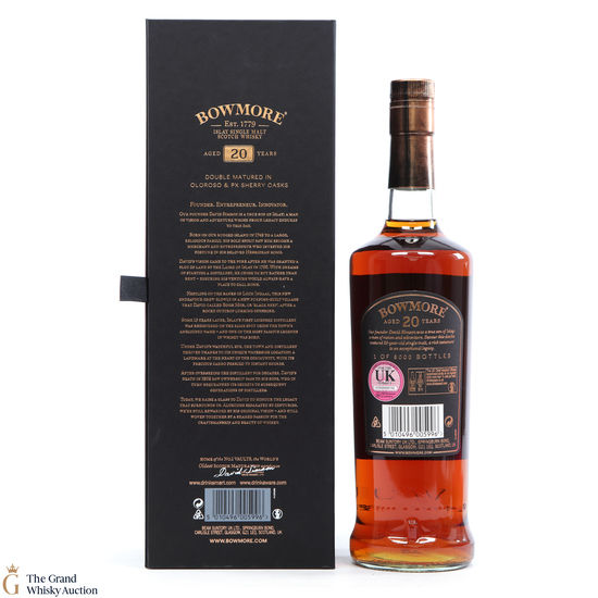 This 20-year-old celebrates and is a testament to the founder of Bowmore. This dram has gone through a double maturation period of 15 years in Oloroso Sherry Butts followed by 5 years in a first fill PX Butts. One of only 6000 bottles.