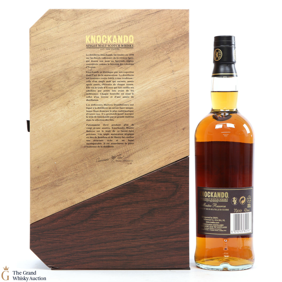 1994 Knockando Master Reserve, matured in bourbon and sherry casks and bottled 21 years later. This attractive gift set includes 2 x branded glasses.