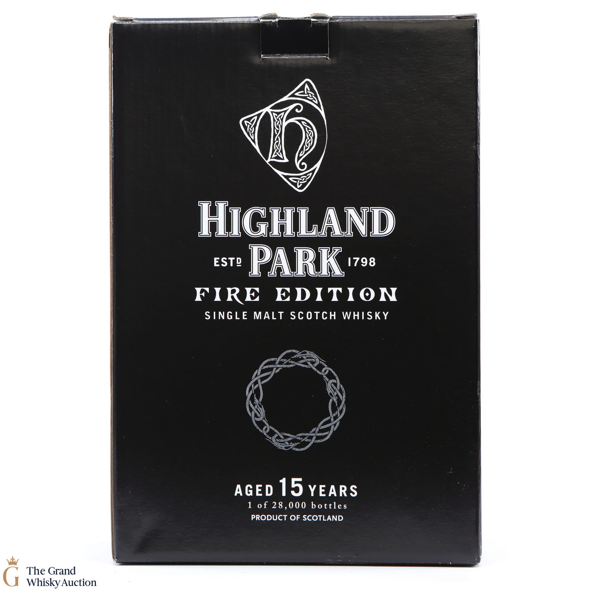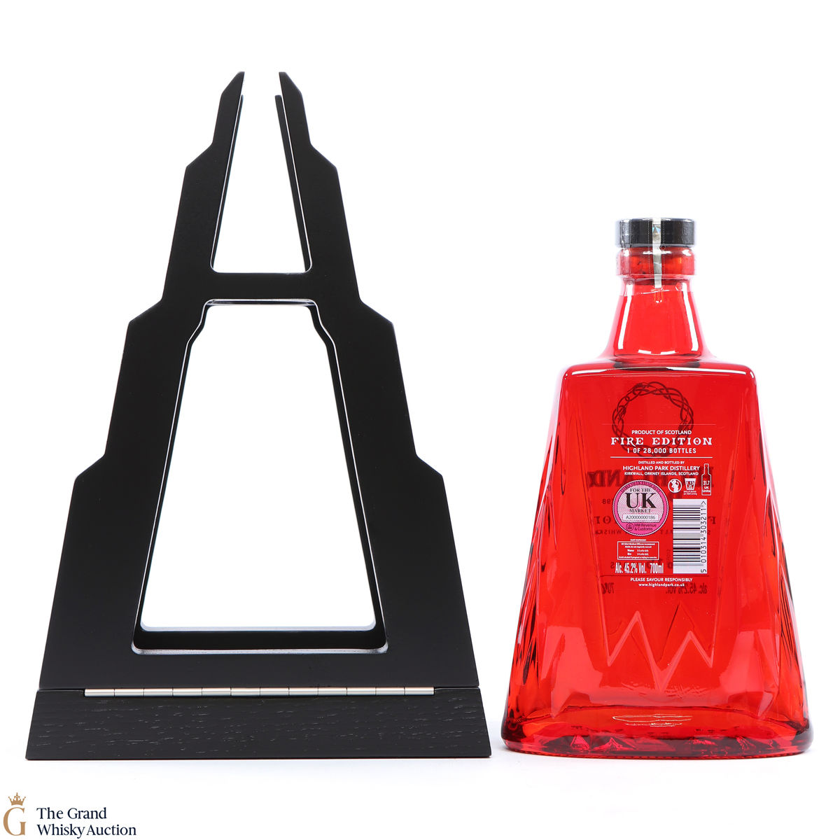 This stunning Highland Park 15 year old single malt follows the 'Ice' edition to complete this Highland Park two-part series. The 'Fire' edition celebrates Muspelheim, the glowing Norse fire realm of destruction. The malt was matured in refill Port casks and bottled at 45.2% abv. It's presented in a cradle shaped like a mountain.