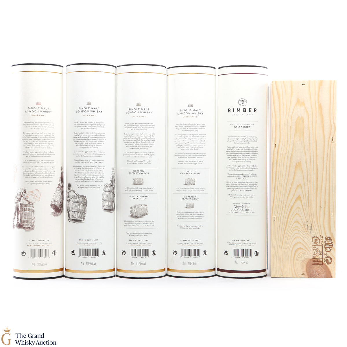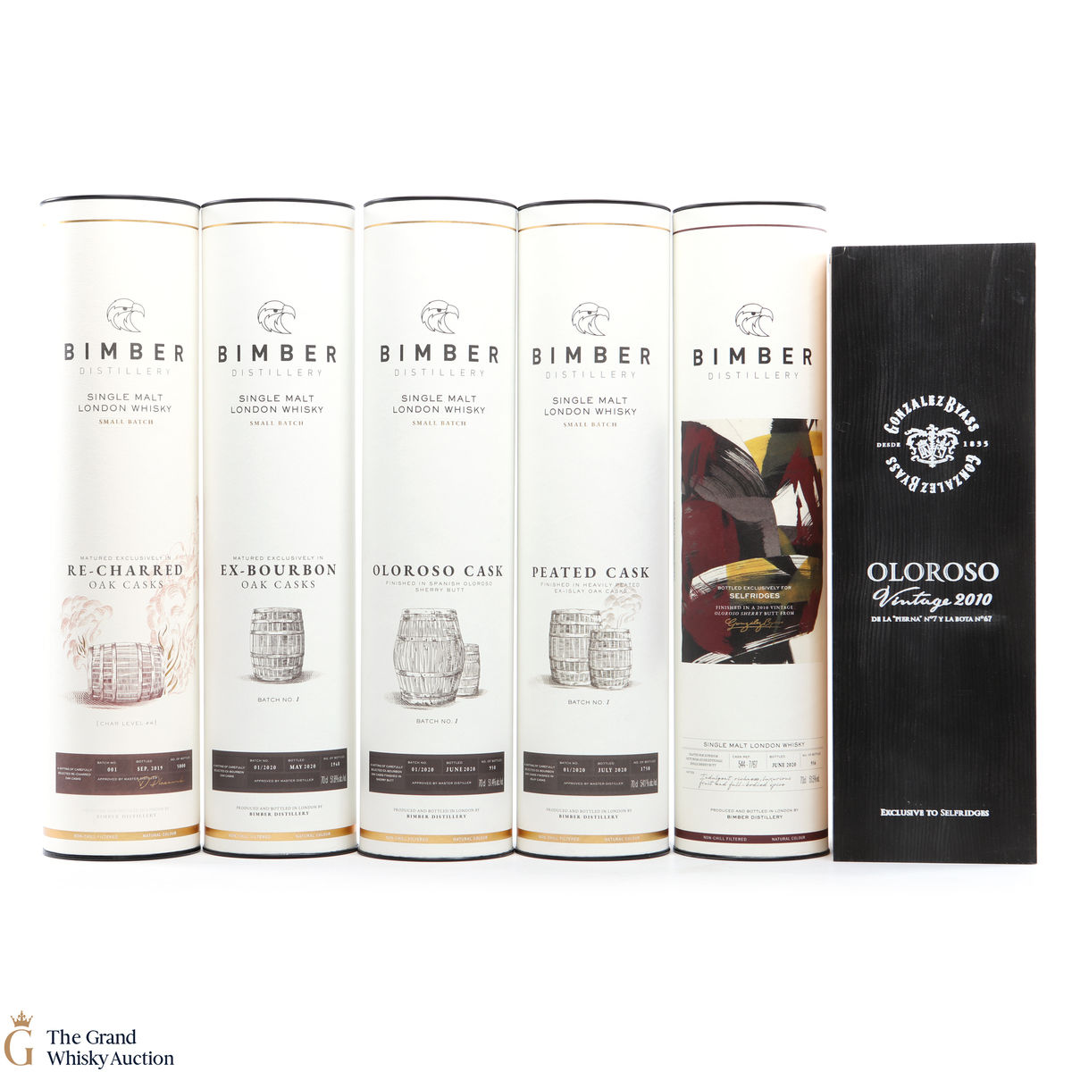 - Oloroso Sherry Butt #544-7/67 - Selfridges Exclusive An exclusive partnership between the London distillery and department store Selfridges. This Bimber was made from single farm barley (which was malted at Westminster Maltings) and matured in four 1st fill American Oak Ex-bourbon casks. It was then finished in a 2010 single Oloroso sherry butt from hugely renowned Spanish sherry producer González Byass. Bottled in June 2020 at 51.5% ABV. Only 937 bottles were produced from Cask #544-7/67. Each tube which cases the bottles has artwork from the Dutch artist and sculptor Eelke van Willegen.