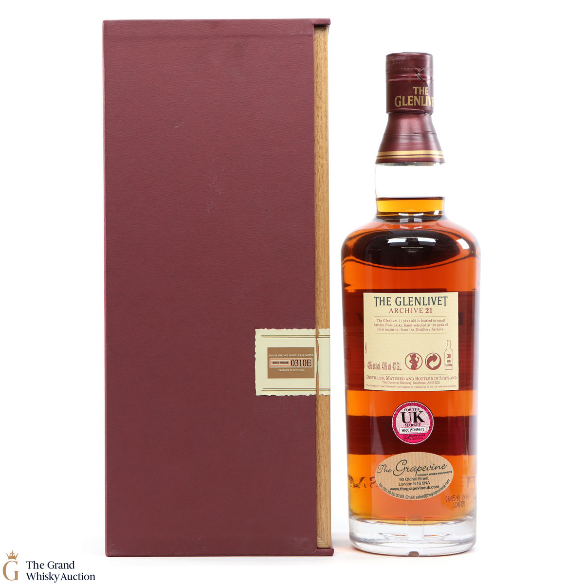 Due to the various ages of bottles and their seals, the condition of liquid is at the buyer's discretion and no claim can be lodged against failure/leakage in transit. Loss and breakage cover is available at 3% of the hammer price as standard. If the lot is not insured, no claim can be lodged against the courier or The Grand Whisky Auction for breakage or loss in transit.