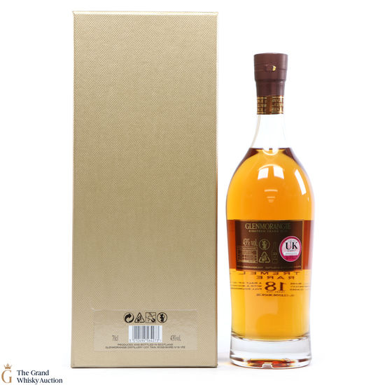 This bottle is an 18 year old Extremely Rare, Highland single malt produced by Glenmorangie. It has been perfected by the sixteen men of Tain who have specially aged this bottle for 18 years in superior oak casks and a period in Oloroso Sherry casks.