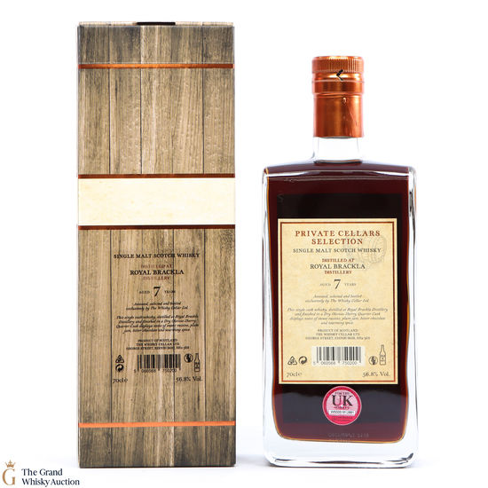 One of just 160 bottles, this Royal Brackla 7 year old was independently bottled by The Whisky Cellar. It was finished in an Oloroso sherry quarter cask and bottled at 56.8%.
