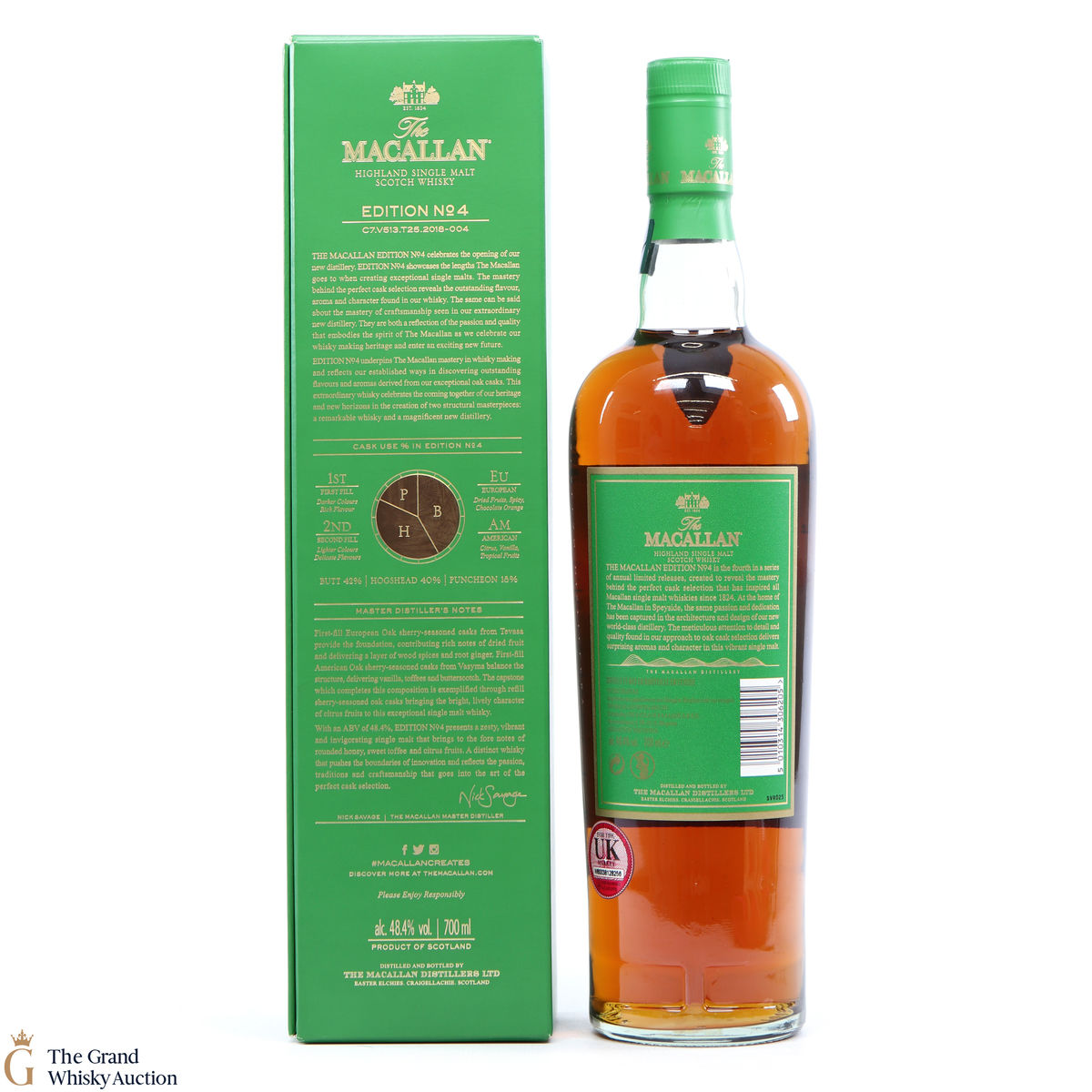 The fourth release in the Edition Series from The Macallan, this Speyside single malt is a celebration of the distillery's whisky making heritage, combining a unique selection of oak cask styles. Edition No.4 reflects the craftsmanship and pioneering design of the new Macallan distillery.