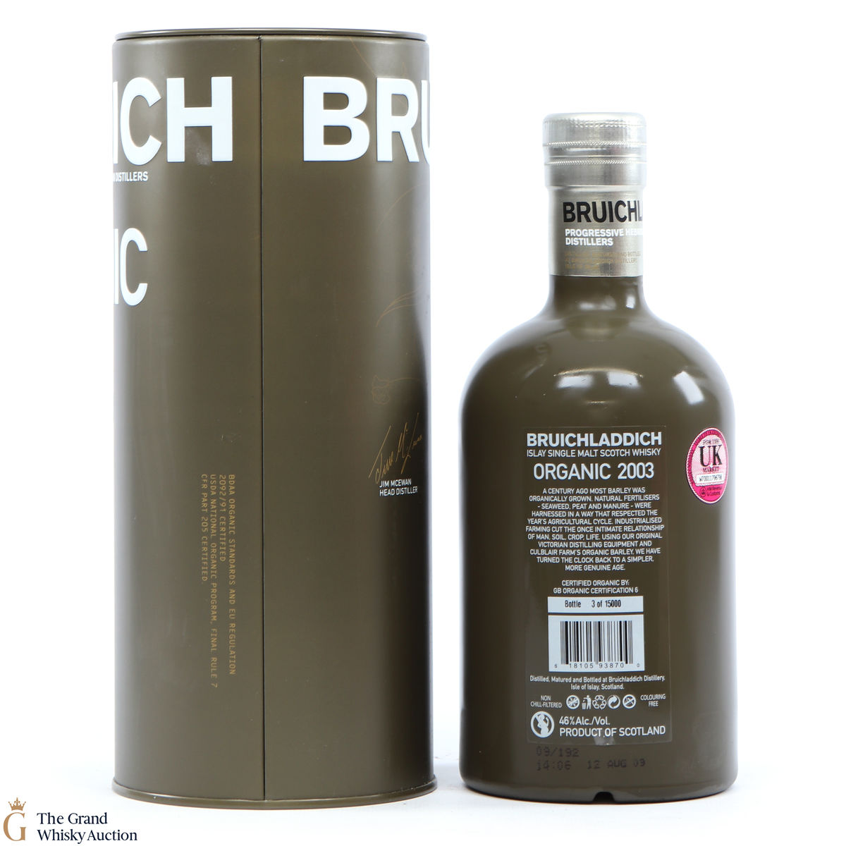 A fully organic Bruichladdich 2003 - a century ago most barley was organically grown; natural fertilisers – seaweed, peat and manure – were harnessed in a way that respected the year’s agricultural cycle. 2003 was a particularly fine harvest of Chalice barley for William rose at Culblair Farm. Supreme quality barley combined with a slow trickle-distillation to do it justice, and new oak has resulted in Bruichladdichs creamiest release yet. This is a limited edition release of 15,000 numbered bottles and Bruichladdichs first organic release - The name means 'In the Traditional Way.'