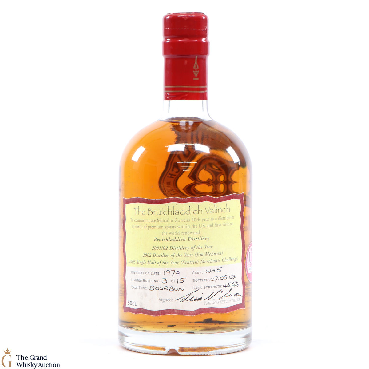 A super rare bottling run limited to just 15 BOTTLES!! Distilled in 1970 this valinch commemorates Maocolm Cowens 40th year as a distributer of merit of premium spirits within the UK and first visit to Bruichladdich.