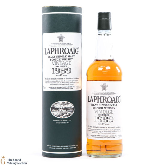 This is a 1989 vintage Laphroaig, bottled at 17 years of age. It was released for the Friends of Laphroaig for Feis Isle 2007 and to celebrate the opening of the 'Friends' lounge at the distillery.