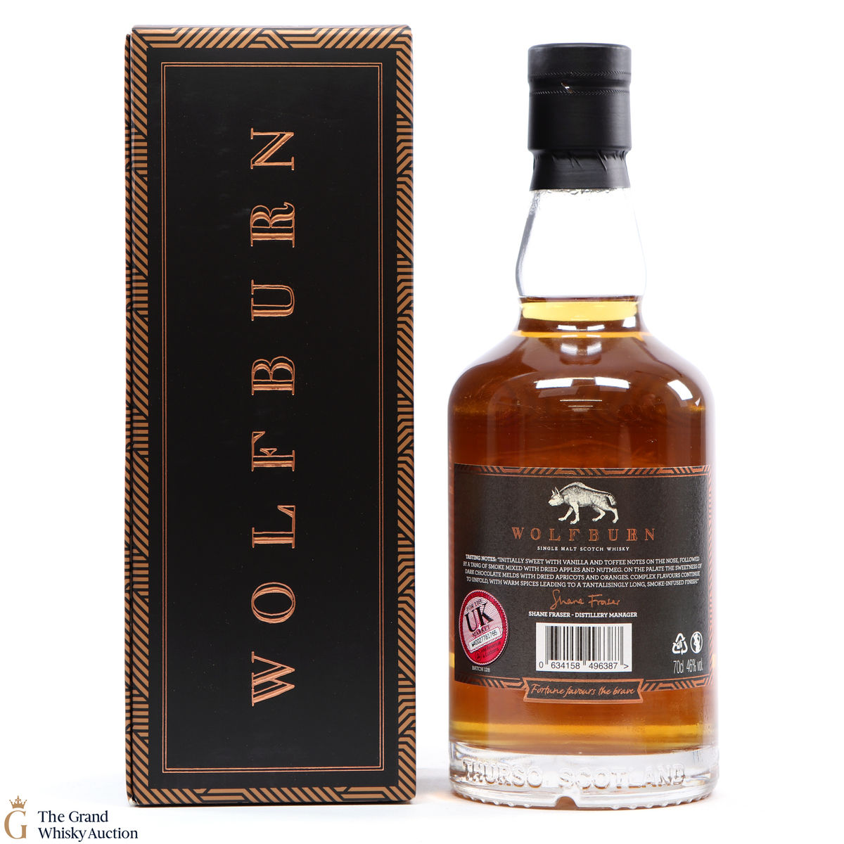 Due to the various ages of bottles and their seals, the condition of liquid is at the buyer's discretion and no claim can be lodged against failure/leakage in transit. Loss and breakage cover is available at 3% of the hammer price as standard. If the lot is not insured, no claim can be lodged against the courier or The Grand Whisky Auction for breakage or loss in transit.