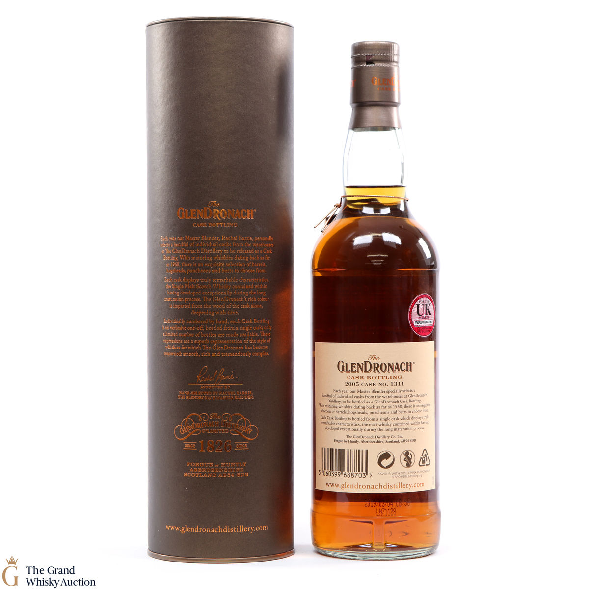 Due to the various ages of bottles and their seals, the condition of liquid is at the buyer's discretion and no claim can be lodged against failure/leakage in transit. Loss and breakage cover is available at 3% of the hammer price as standard. If the lot is not insured, no claim can be lodged against the courier or The Grand Whisky Auction for breakage or loss in transit.