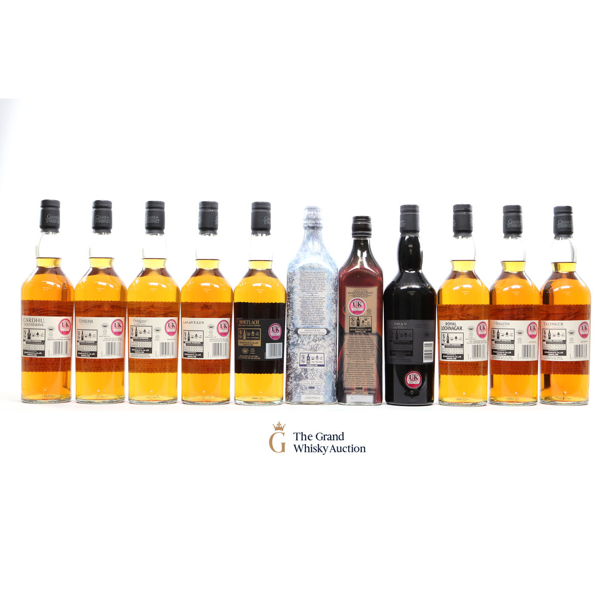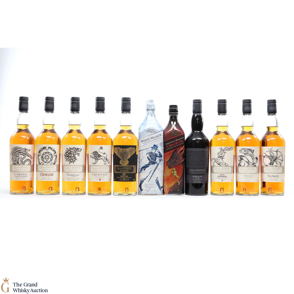 Game of Thrones series plus Johnnie Walker White Walker Game of Thrones edition, Song of Fire and Mortlach, Six Kingdoms edition. This lot includes 12 x 70cl.