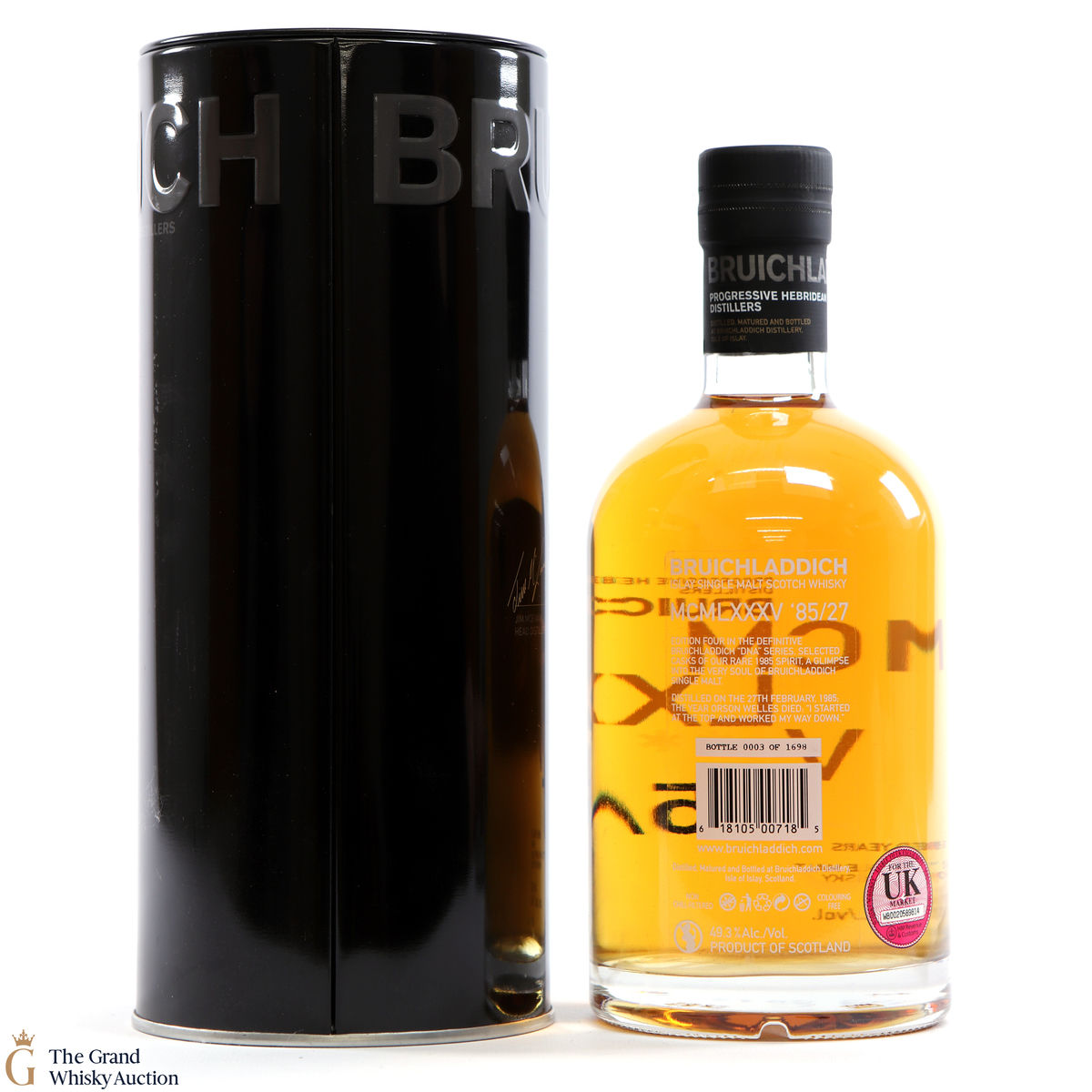 This bottle is edition 4 from the DNA series released by Bruichladdich. It was distilled on the 27th Feburary 1985 and left to then mature before being bottled 27 years later.