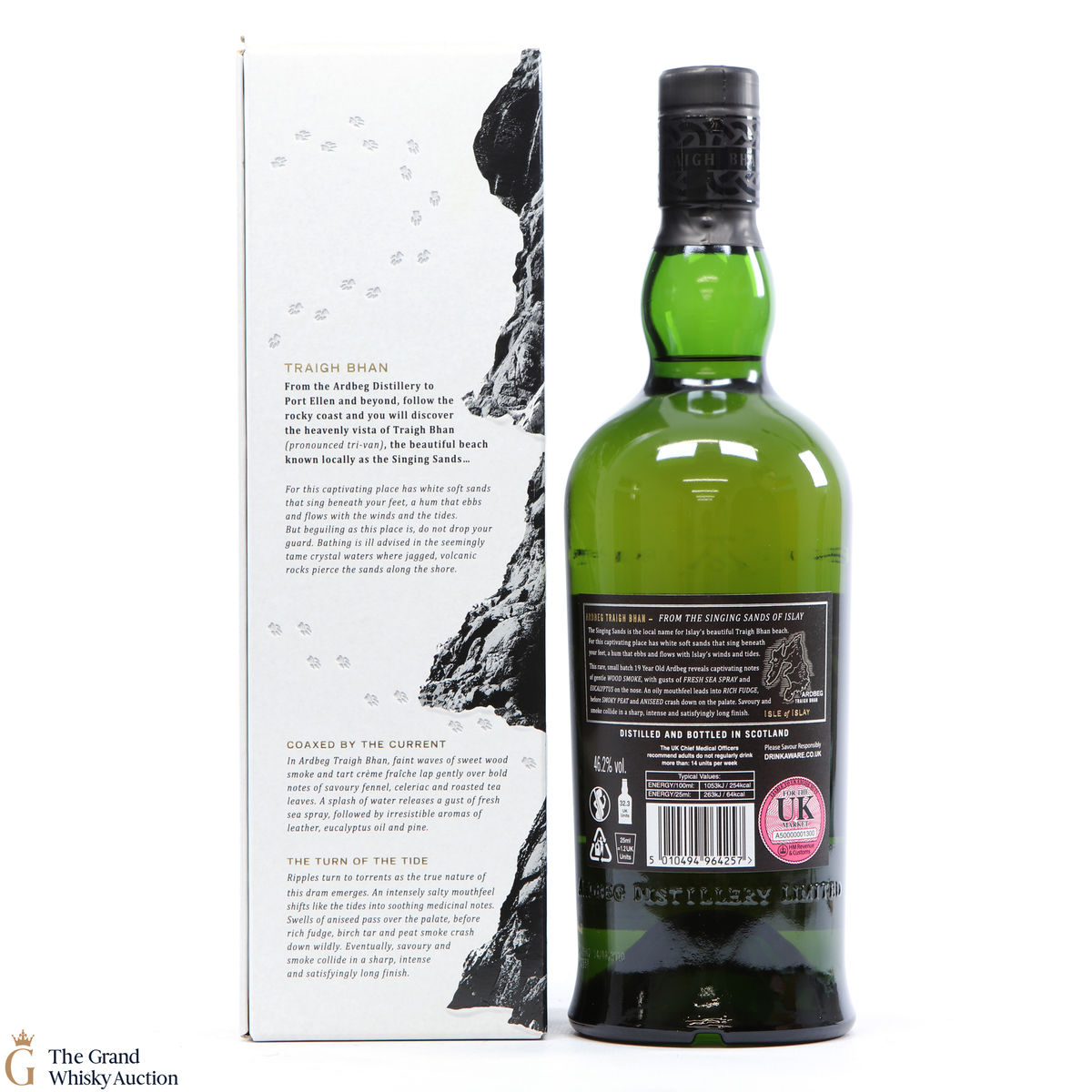 Matured in American oak and Oloroso sherry casks – Ardbeg Traigh Bhan is a 19 year old whisky and the Distillery’s 2nd small batch release. Inspired by Islay’s Traigh Bhan beach (known locally as the Singing Sands), this rare aged spirit is an enchanting reflection of the place to which it gets its name.