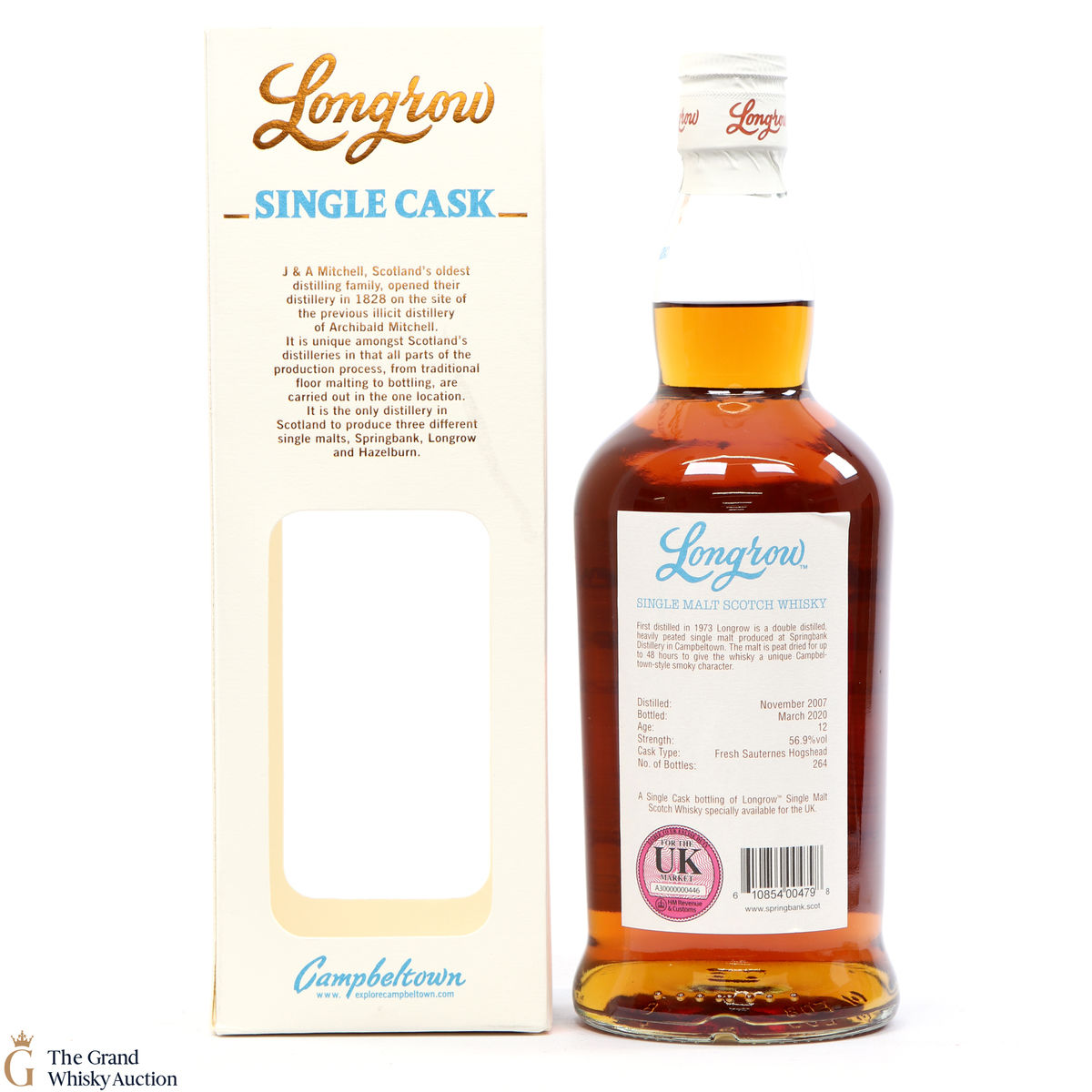 This Longrow is limited single cask release. Distilled in November 2007 it was matured for 12 years in Fresh Sauternes Hogshead casks and bottled in March 2020 at 56.9%. This is one of only 264 bottles, exclusively released for the UK market.