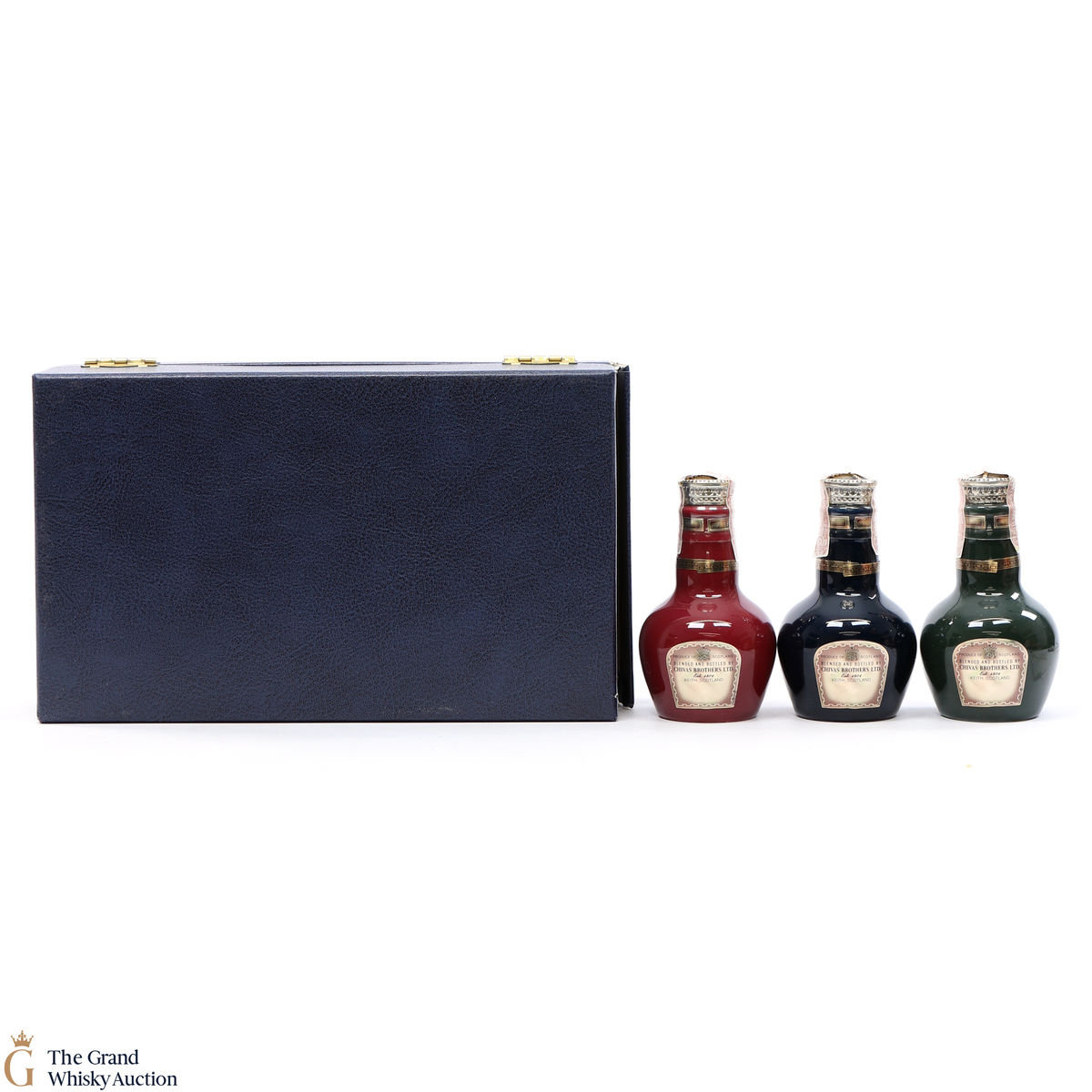 Three Chivas Royal Salutes, in miniature Wade decanters. Ruby, Emerald and Sapphire.