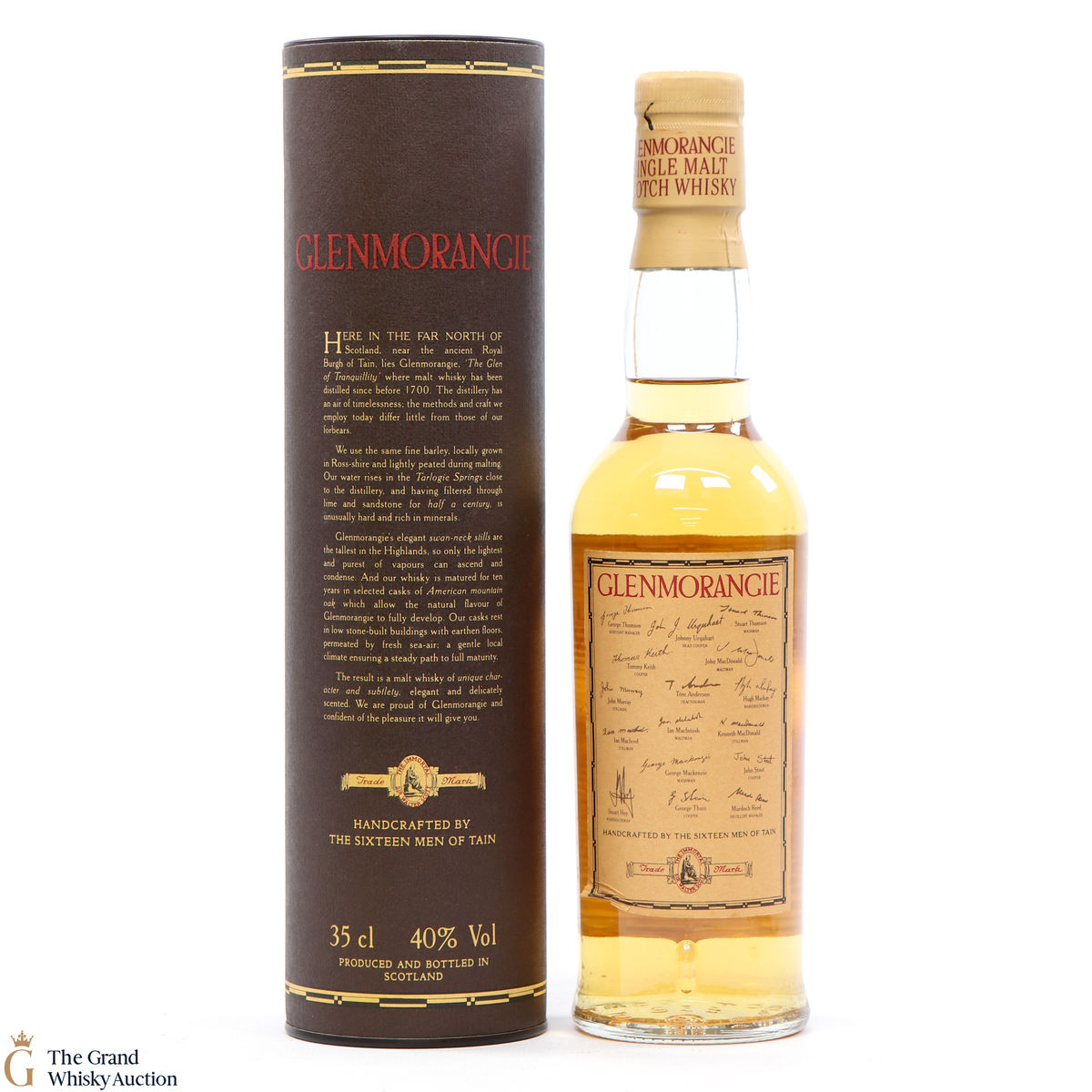 A half bottle of Glenmorangie 10 year old from the 1990's 'handcrafted by the 16 men of Tain.'
