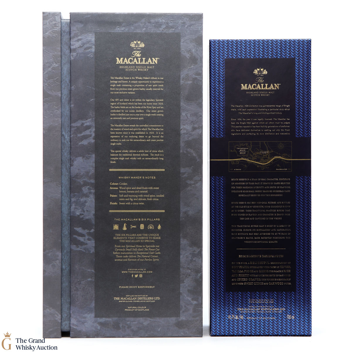 The Macallan Estate Reserve forms part of The Macallan 1824 Collection and is a classic style of Macallan that includes a parcel of specially selected casks to deliver great richness and intensity. 45.7%, 70cl.