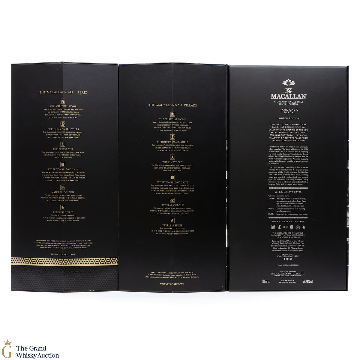 Macallan - Rare Cask Black: 48%, 70cl. The Macallan Rare Cask Black is a one-off, relatively small release of fewer than 100 casks. These were predominantly first fill European and American oak sherry casks.