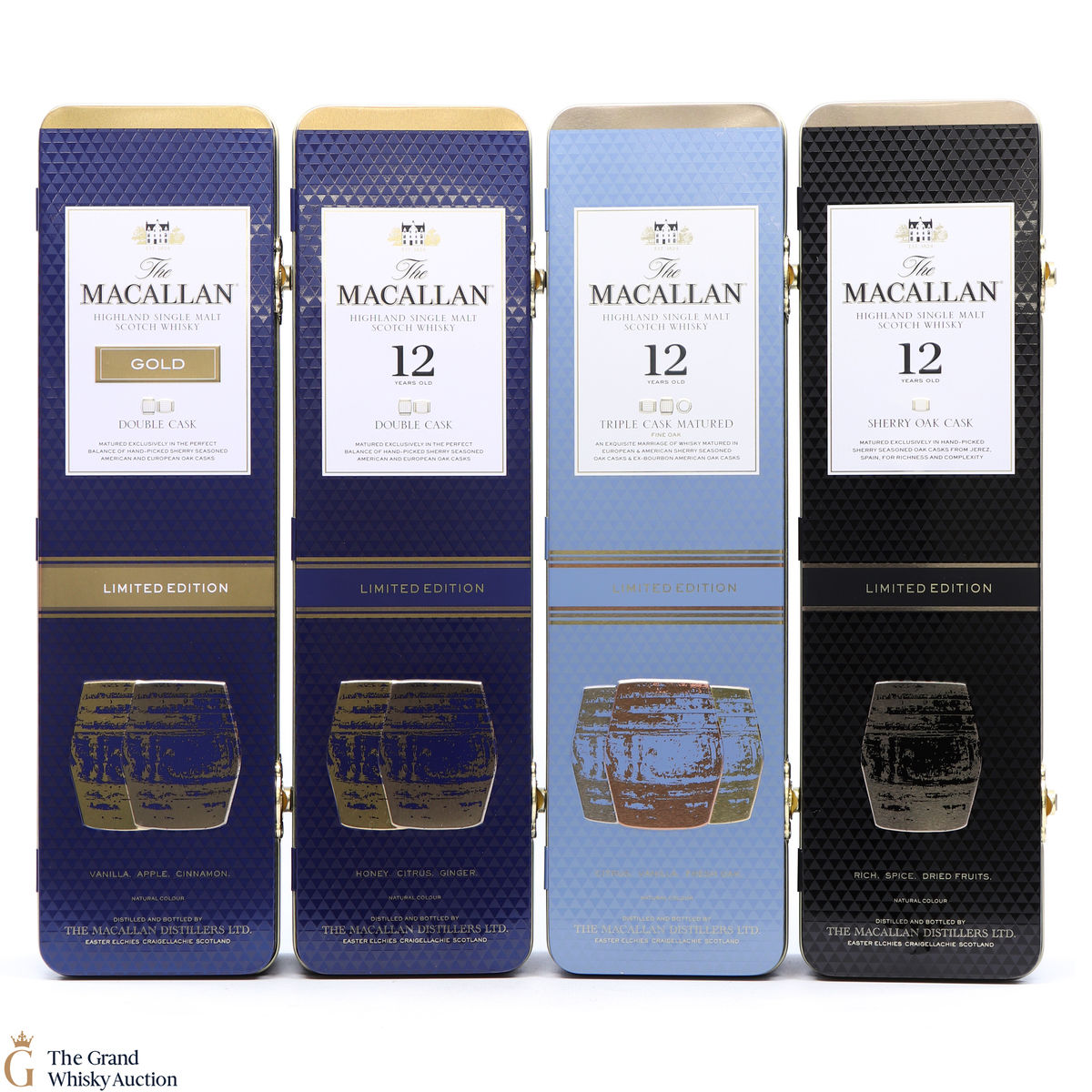 Macallan - 12 Year Old - Double Cask Limited Edition Tin: This Macallan 12 Year Old Double Cask matured in a mixture of European and American oak casks that have previously contained Sherry, as well as American oak casks which have contained Bourbon. It comes presented in a limited edition tin.