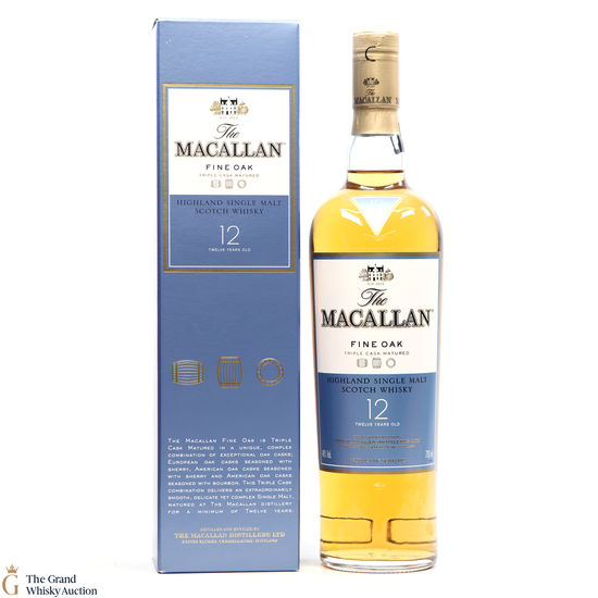 This 12 year old single malt is part of Macallan's Fine Oak, triple cask matured range. It has been matured for twelve years in three oak cask types; Europen oak seasoned with sherry, American oak seasoned with sherry and American oak seasoned with bourbon. The Macallan Fine Oak 12 Year Old is medium-bodied and balanced with fruit, oak and spice.
