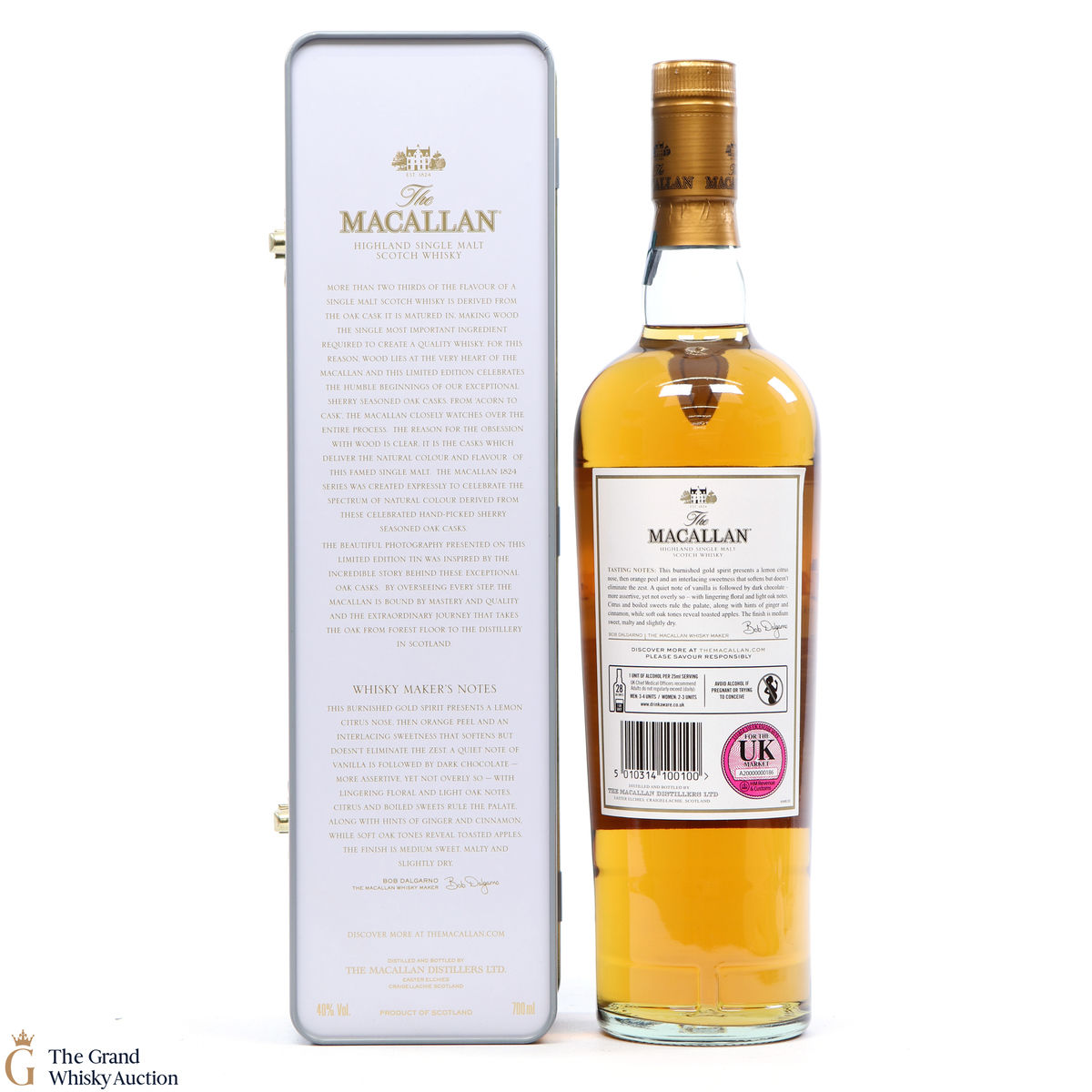 Macallan - Gold (Limited Edition Tin): 40%, 70cl. Macallan Gold was released in late 2012 as part of a series of colour-themed bottlings introduced to replace the distillery's age-statement expressions. Produced from 9-15yo first fill and refill sherry casks, it was designed to sit between the now-defunct 10yo Sherry Oak and 10yo Fine Oak bottlings.