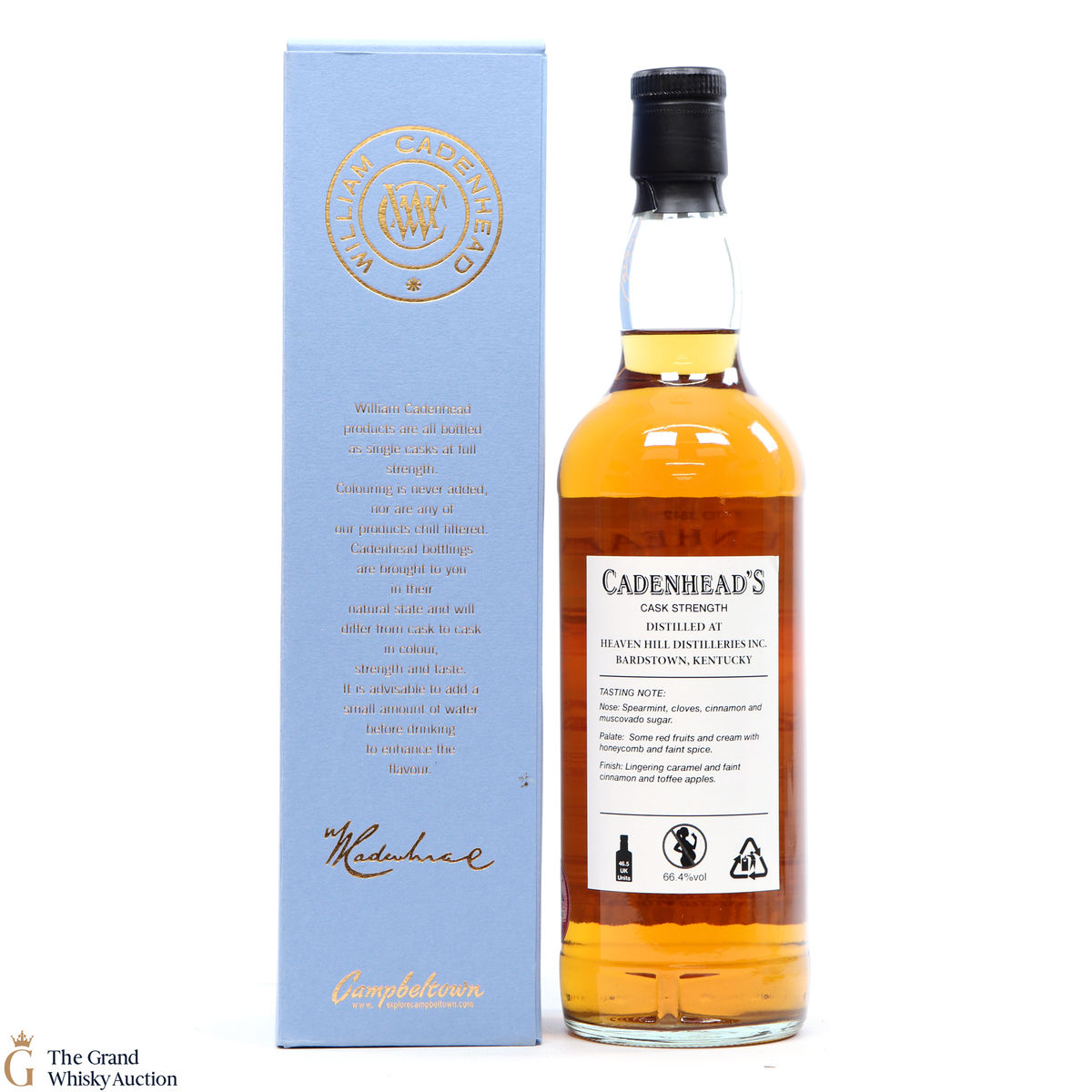 Only 240 bottles of this world of whisky release were bottled by W.M Cadenhead's. Distilled at Heaven Hill, this bourbon comes from a single barrel and was bottled in Autumn of 2019.