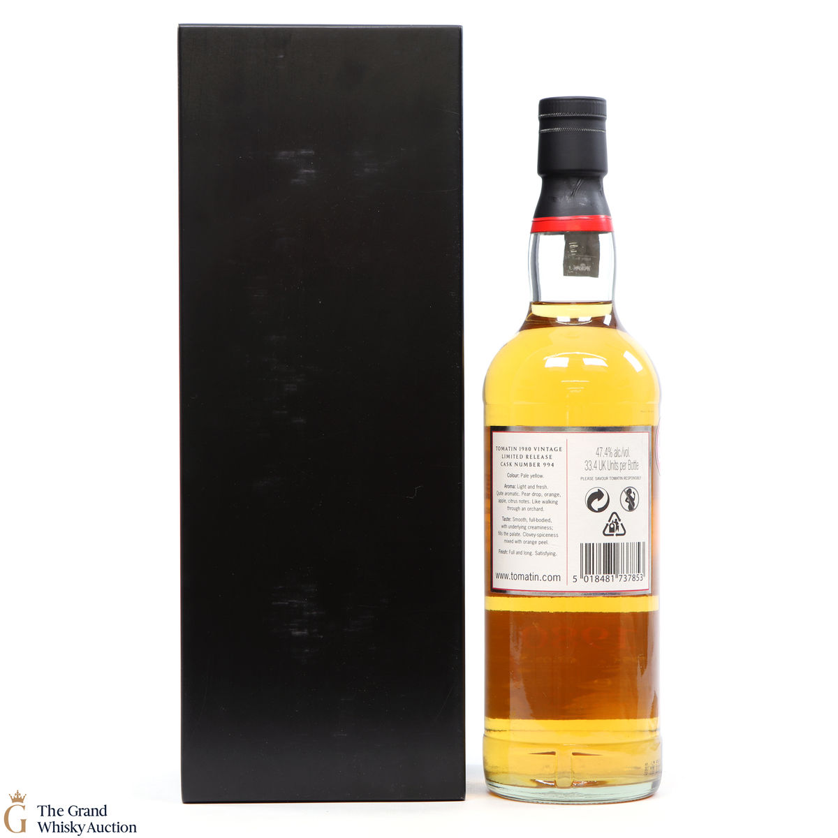 A highly attractive single malt for any whisky collector due to the very limited numbers - 172 bottles total. This 1980 vintage Tomatin was matured in a refill bourbon barrel and bottled on the 07/08/2008.