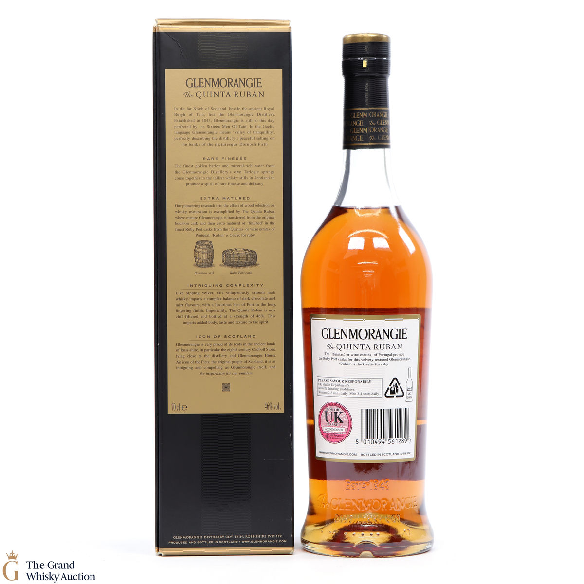 Glenmorangie Quinta Ruban is matured in bourbon casks before finishing in the finest Ruby Port casks from the "Quintas" or wine estates of Portugal. Ruban is Gaelic for Ruby.