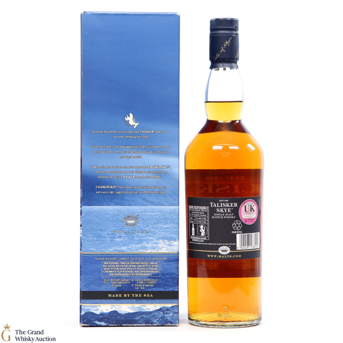 Talisker single malt scotch whisky is from the oldest distillery on the Isle of Skye. Talisker Skye was introduced in early 2015, named after the beautiful island on which the distillery resides. It has been matured in a combination of refill and toasted American oak casks, with a slightly higher proportion of toasted casks.