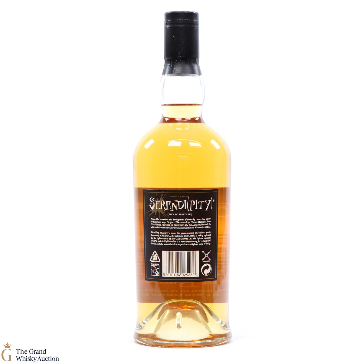 Born out of a happy accident when someone mistakenly mixed some Glen Moray into a vat of old Ardbeg. The mix-up created this blend that is 2 parts Glen Moray and 8 parts of older Ardbeg. Serendipity is a lightly smoky blended malt. A rare find with a charming story.