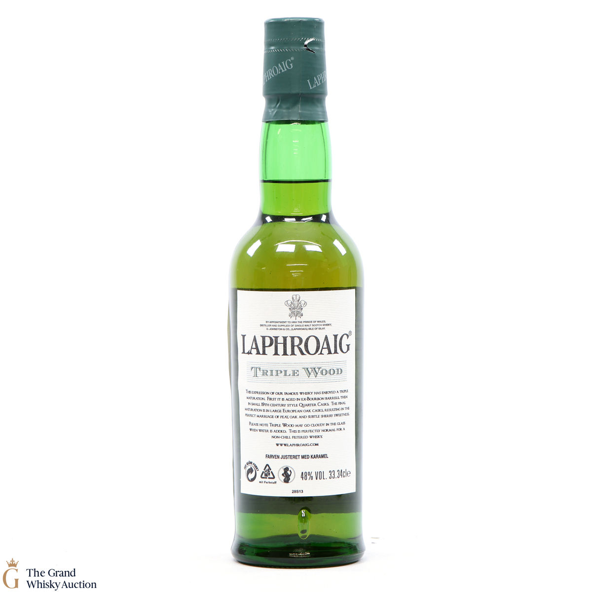 This is a 70 cl bottling of Laphroaig Triple wood. It was originally launched for the duty-free market but the Triple Wood has become a core expression from Laphroaig. The single malt has been triple matured; in bourbon barrels, quarter casks and then Oloroso sherry butts.