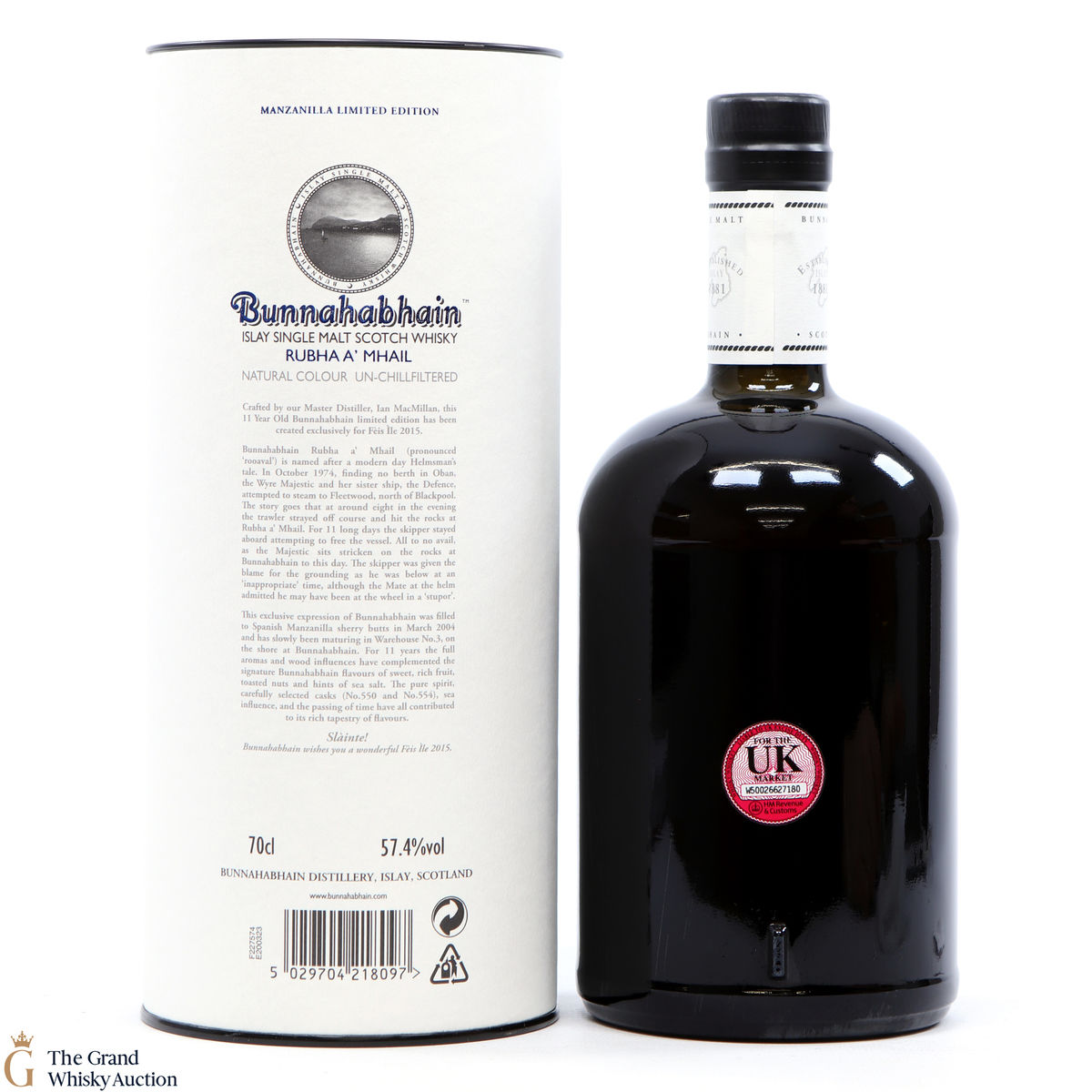 Bunnahabhain Rubha A’ Mhail is a 11-year old Bunnahabhain which was bottled for the 2015 Fèis Ìle. Aged in two Spanish Manzanilla sherry butts (#550 & #554) this is a limited edition of 1,200 individually numbered bottles.