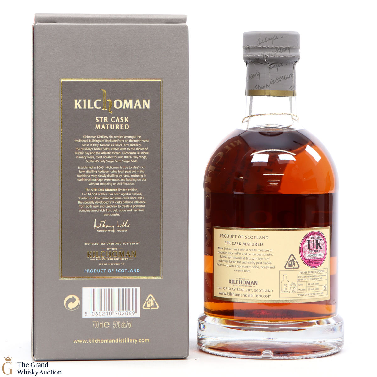 STR - Shaved, Toasted and Re-charred: the treatment that some ex-red wine casks from Kilchoman were given in 2012 before being filled with 50ppm new make spirit. The spirit was left to mature in these STR casks until 2019, making the whisky around 7 years old, before being bottled at 50% ABV.
