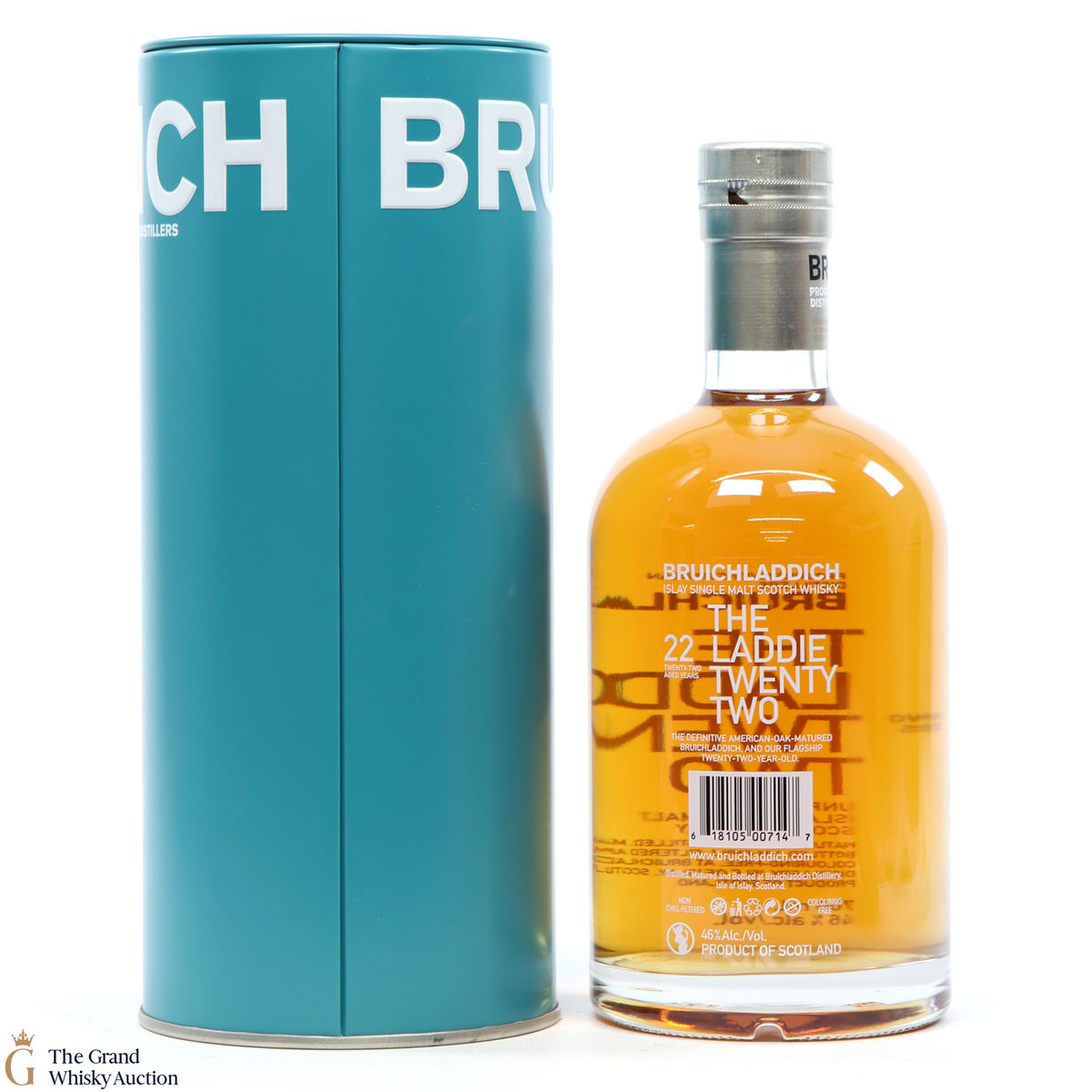 Incased within their unique Bruichladdich turquoise coloured tin comes this 22-year-old dram. The colour of the tin is said to mirror the colour of Loch Indaal.