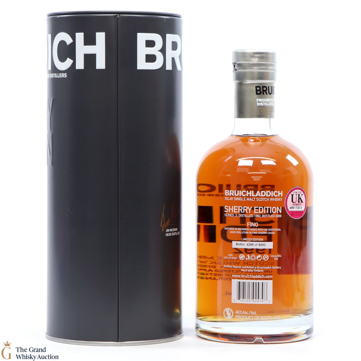 Bruichladdich Fino Sherry was the 4th and final bottle in the Bruichladdich sherry finished range. It was distilled in 1992 matured for 17 years in Fino floor butts from Bodegas Rey Fernando de Castilla and was bottled in 2009. This is one of 6000 bottles released.