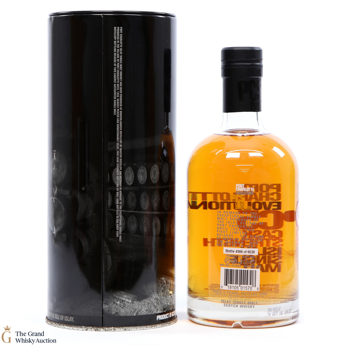 Port Charlotte PC5, produced by Bruichladdich Distillery, is a heavily peated spirit. It was the first release of heavily peated Port Charlotte and was produced in 2001 from some of the first spirits to be produced after the distillery's reopening. The single malt was bottled at 5 years old in 2006 and was limited to 6038 bottles.
