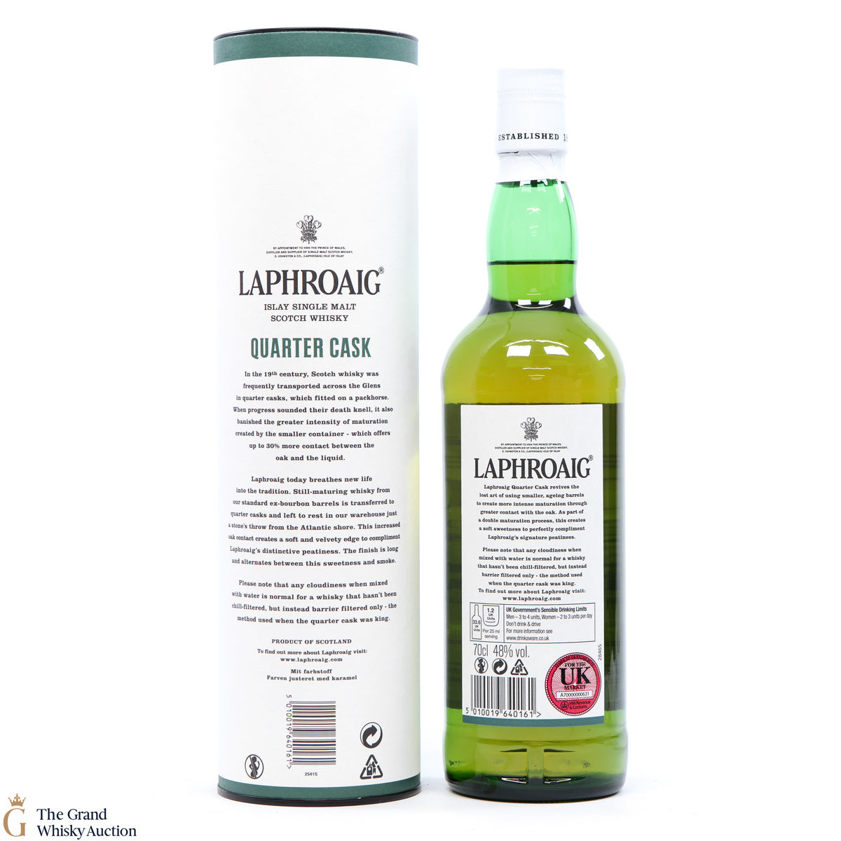 A younger, lively Laphroaig that has had the maturation process speeded up by ageing in quarter casks. As the size of the cask is smaller the maturation doesn't need to be as long. This process has created a soft sweetness and a velvety feel when first tasted, then the intense peatiness so unique to Laphroaig comes bursting through.