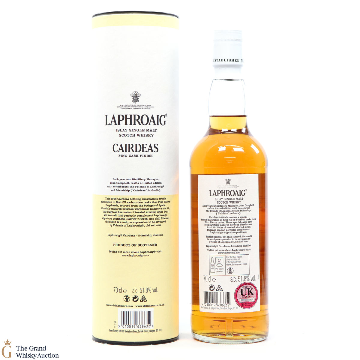 This expression was bottled in 2018 and includes double matured Laphroaig from ex-bourbon barrels then Fino Sherry Casks. These special casks have been stored in Warehouse 8 and 10.