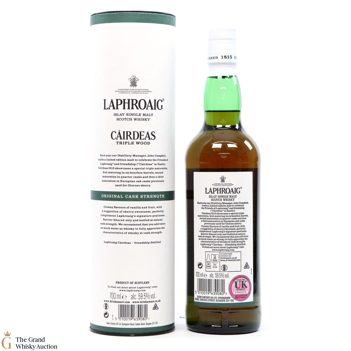 Cairdeas, Gaelic for 'friendship', is an annual bottle release by Laphroaig for their Friends of Laphroaig members. This Càirdeas Triple Wood Cask Strength was released for Fèis Ìle 2019. It has had a special triple maturation; first matured in ex-bourbon barrels, then in quarter casks and finally in European oak casks which previously held oloroso sherry.